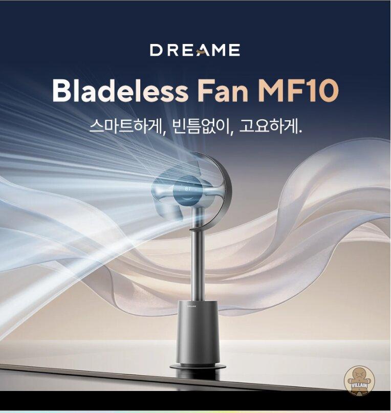 MF10 블레이드리스 팬은 드리미가 CES 2026에서 공개한 차세대 스마트 선풍기다. 이중 회전 구조 기반의 270도 공간 공기 순환 기술(GyroWing™)을 적용해 좌우·상하로 동시에 회전하는 공기 흐름을 통해 실내 전체에 바람을 고르게 전달해, 기존 선풍기의 국소 냉방 한계를 개선했다.