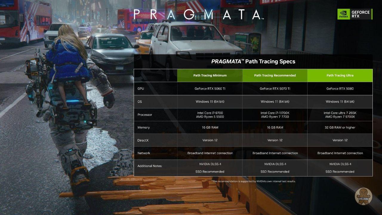 한편 엔비디아와 캡콤은 최소(Minimum), 권장(Recommended), 울트라(Ultra) 패스 트레이싱 사양과 요구사항을 공개하며 각 번들 GPU에서 구현할 수 있는 그래픽 품질 수준을 제시했다.