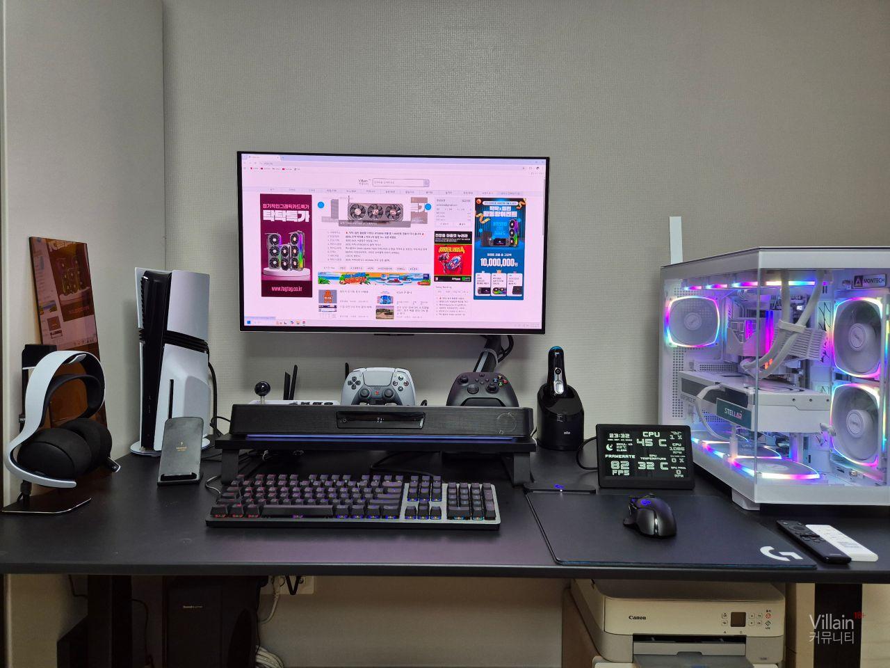 모니터는 삼성 G80SD입니다. 32인치4K OLED입니다. PC랑 플스 왔다갔다 하면서 사용하기도 좋고 이것저것 귀찮을땨는 타이젠OS로 넷플릭스랑 유튜브만 보기도 합니다. 타이젠OS가 말이 많은데 개인적인 생각으로는 현재 개선이 많이되서 매우 만족하면서 사용하는 중 입니다.
