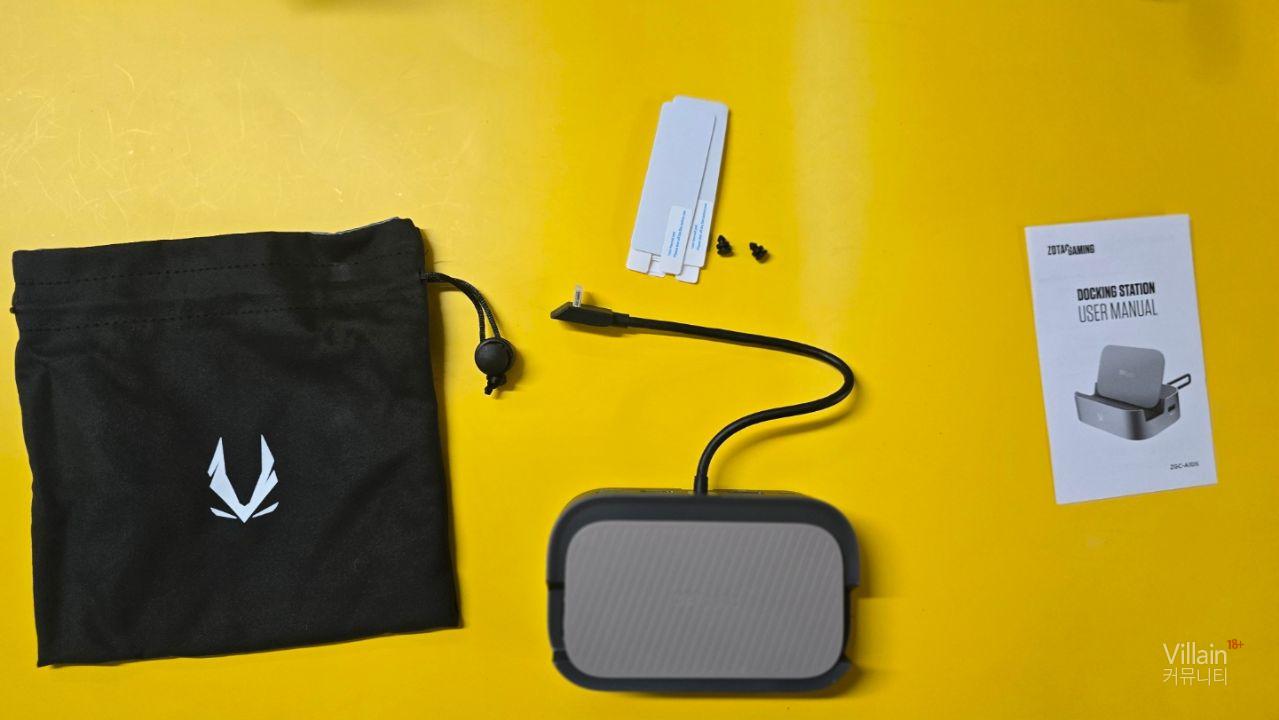 구성품은 도킹스테이션 본체랑 파우치 그리고 서멀 패드가 달려있는데요.