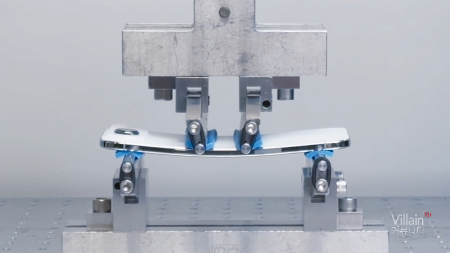 영상에서는 아이폰 에어의 중앙(스마트폰이 가장 잘 휘어지는 지점)에 130파운드(약 59kg)의 압력을 기계로 가하는 장면이 나온다. 그럼에도 불구하고 아이폰 에어는 놀라울 정도로 잘 복원되며, 평평한 표면에 올려놓았을 때도 휘어진 흔적이 전혀 보이지 않는다.