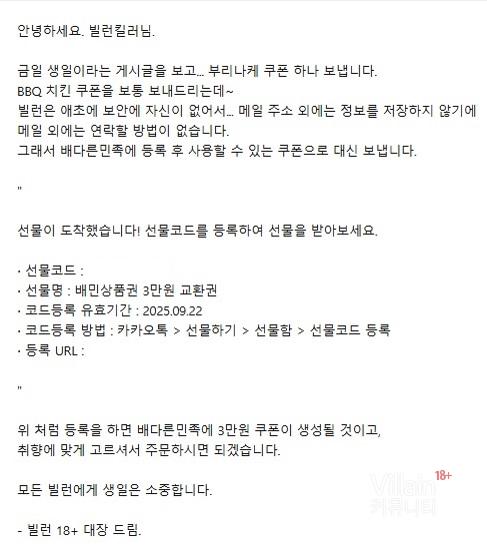 갑자기 메일로 배다른민족(배달의민족) 쿠폰을 보내주시네요.