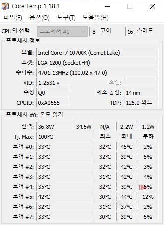 기본적으로 CPU 코어별 온도를 보여줍니다.
