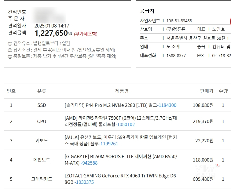 올해 1월에 산겁니다.. 조카 생일 선물로 컴퓨터 맞춰줬거든요..