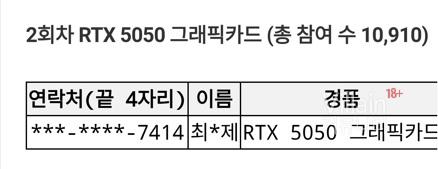 다나와 5050 래플 당첨자 나왔네요.