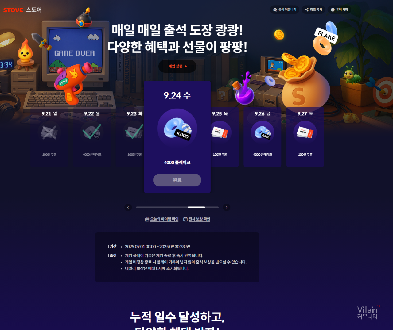 따라서 내일까지 기다린다음 아무 스토브 게임 한번 실행시켰다가 끈 뒤 출석체크 보상 받으시면 내일 00시부터 공짜로 받는것도 가능합니다.