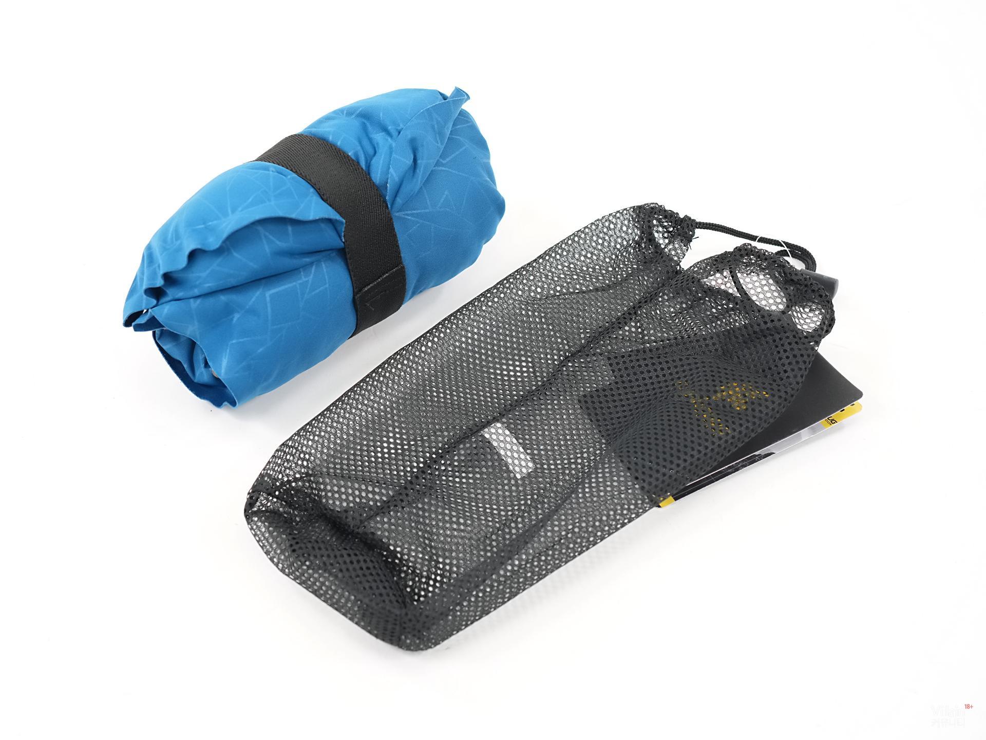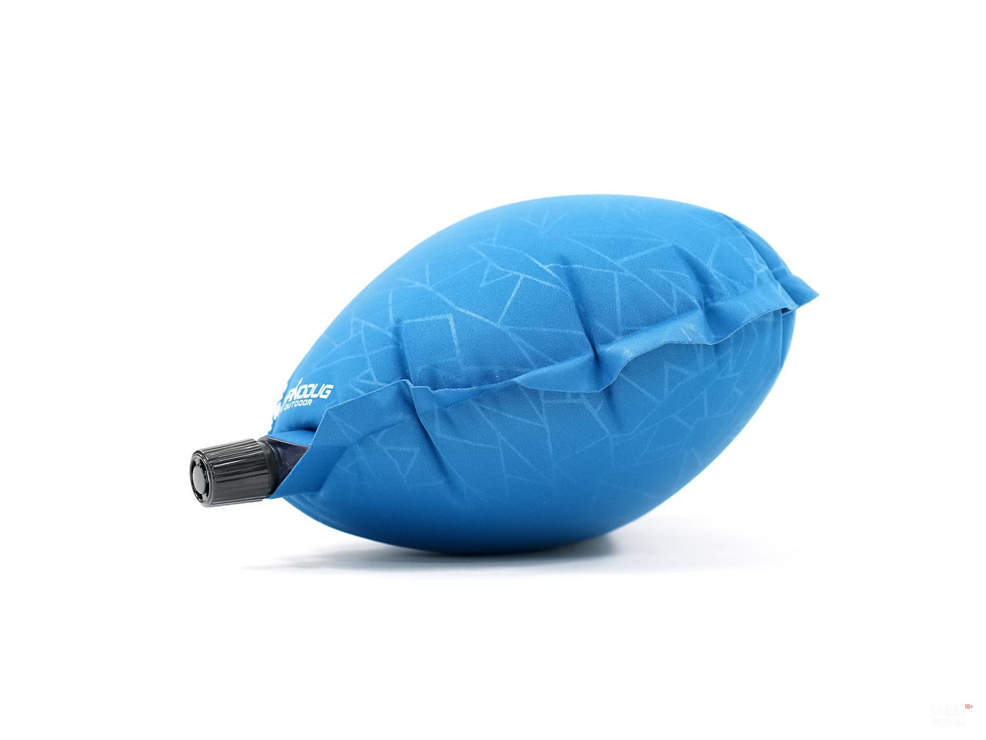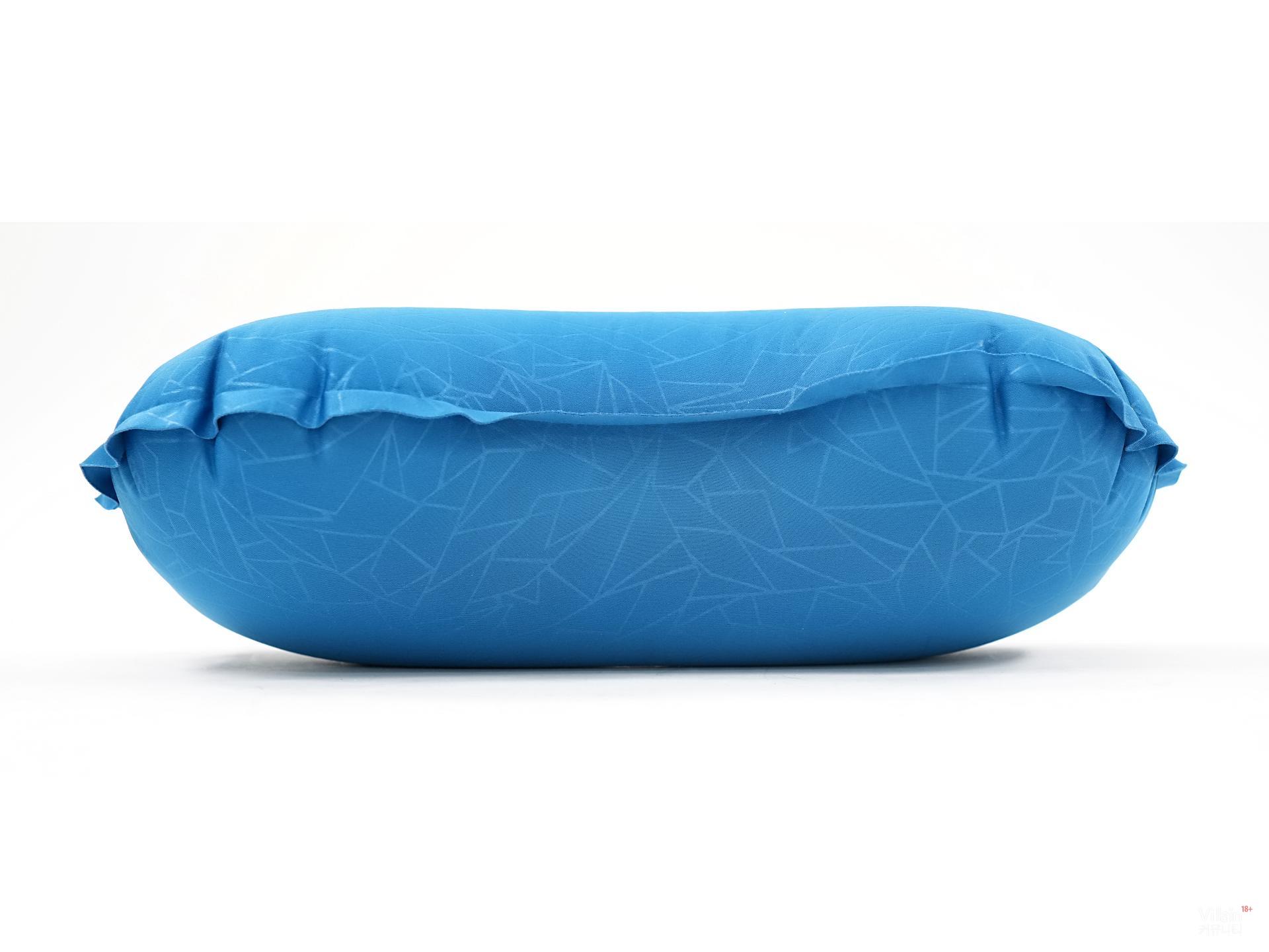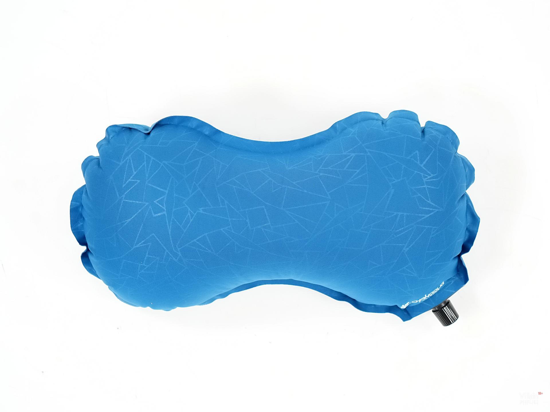 38×22 cm(공식 스펙은 37×22×9 cm)짜리 땅콩 모양 공기쿠션이다. 75D 폴리에스터 위에 TPU 코팅을 씌웠고, 안에는 독일 바이어 고탄성 스펀지(?) 라고 작혀 있는데 그냥 솜뭉치가 굴러다니는 드러운 느낌. 밸브를 돌려 열면 스펀지가 스스로 숨을 들이켜 팽창하고, 부족하면 두세 번 후~ 불어 넣어 마무리한다. 무게? 손바닥보다 가벼운 140 g 수준이라 배낭 한 구석에 넣어도 존재감 제로다.