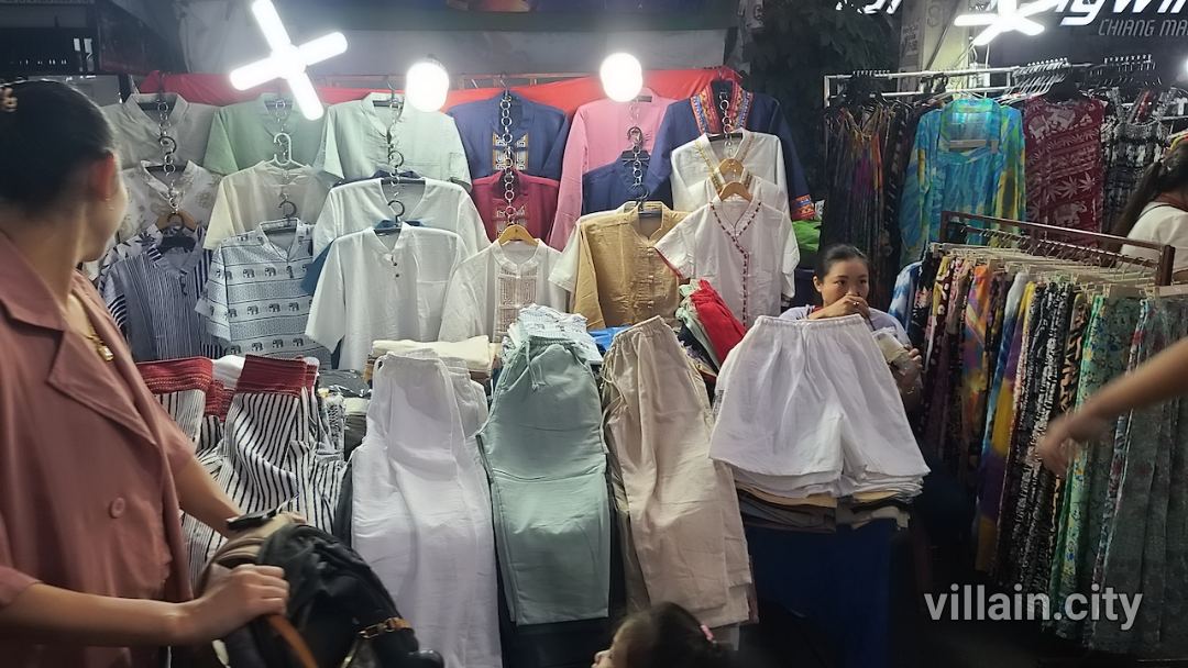 가장 많이 보이는 물건은 옷이다. 간단한 천막을 쳐놓고 옷걸이를 준비한 가게에서 저렴하고도 다양한 옷이 손님을 유혹한다. 대부분은 관광객이 편하게 입을 수 있는 셔츠와 면바지 등이며, 가격대 역시 100바트(약 3,700원)~300바트(약 11,400원) 정도로 즉석에서 구입하기에 별 부담이 없다.
