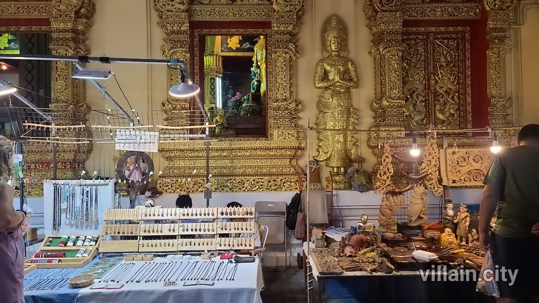 선데이 마켓의 흥미로운 부분은 올드타운 안에 있는 사찰 건물과 야시장의 조화다. 문화재이자 현재 스님들이 머물며 수행하는 절이 개방되고, 그 안에서 갖가지 물건을 판다.