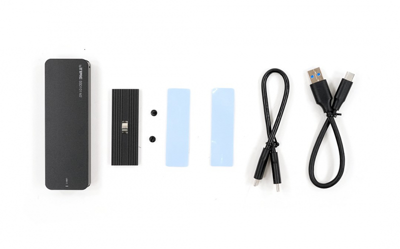 제품 구성은 심플하다. SSD101M2 케이스 본체와 함께 ▲USB Type-C to C 케이블 ▲USB Type-C to A 케이블 ▲SSD 고정을 위한 나사 및 스탠드오프 ▲조립용 미니 드라이버 ▲발열 해소용 서멀 패드 2장까지 제공된다. M.2 SSD를 외장 케이스로 조립하고 사용하는 데 필요한 모든 구성이 갖춰져 있어, 사용자는 별도의 공구나 액세서리를 구매할 필요 없이 즉시 조립을 시작할 수 있다.