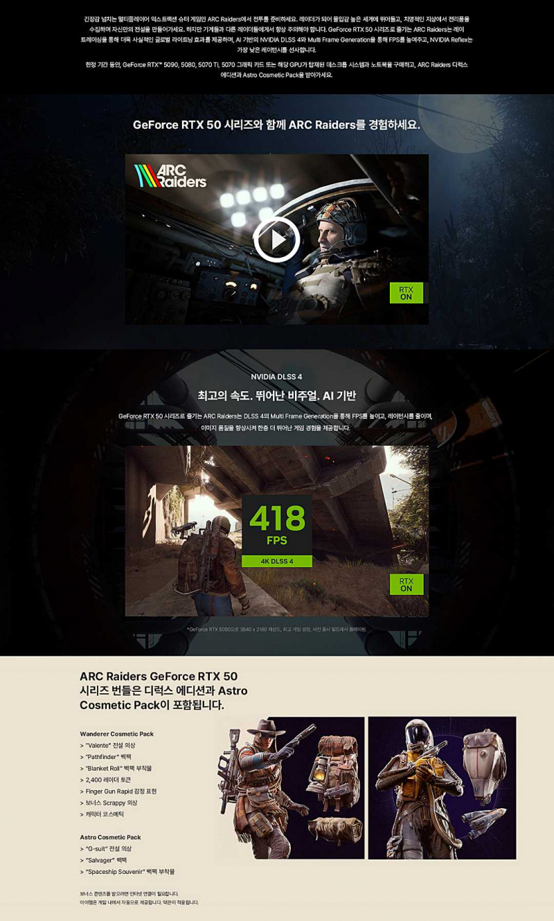 아크 레이더스는 언리얼 엔진5 기반의 협동 어드벤처 게임으로, 미지의 기계 생명체 ‘ARC’에 의해 침공당한 미래 지구를 배경으로 한다. NVIDIA DLSS 4(Multi Frame Generation 포함) 기술이 적용돼, AI 기반의 고화질·고프레임 환경에서 플레이할 수 있다.