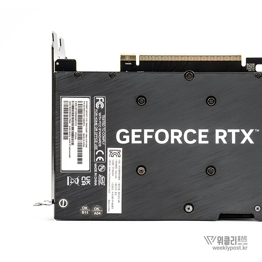 메모리는 삼성 28Gbps GDDR7(K4VAF325ZC‑SC28) 8GB 또는 16GB 모듈을 탑재한다. 그래픽 엔진은 TSMC 5nm(NVIDIA4N) 공정으로 제조된 엔비디아 GB206 GPU다. 다이 크기는 181mm², 트랜지스터 수는 219억 개다. 4,608CUDA 코어, 4세대 RT 코어, 5세대 Tensor 코어가 구성돼 1080p·1440p급 게이밍에 필요한 레이 트레이싱과 DLSS4 기능을 모두 활용할 수 있다.