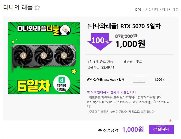 다나와 래플 5일차 마지막 입니다.