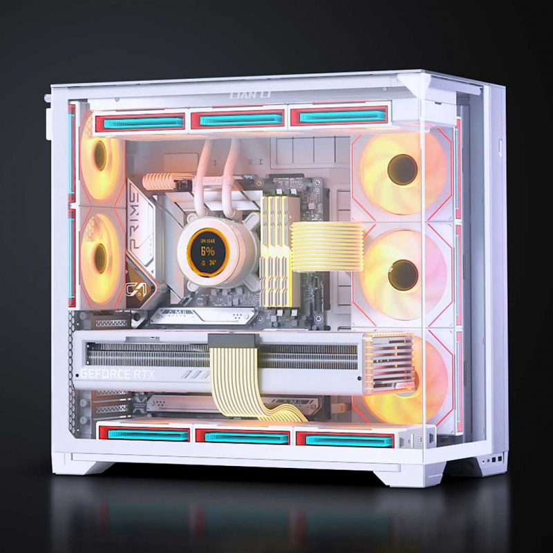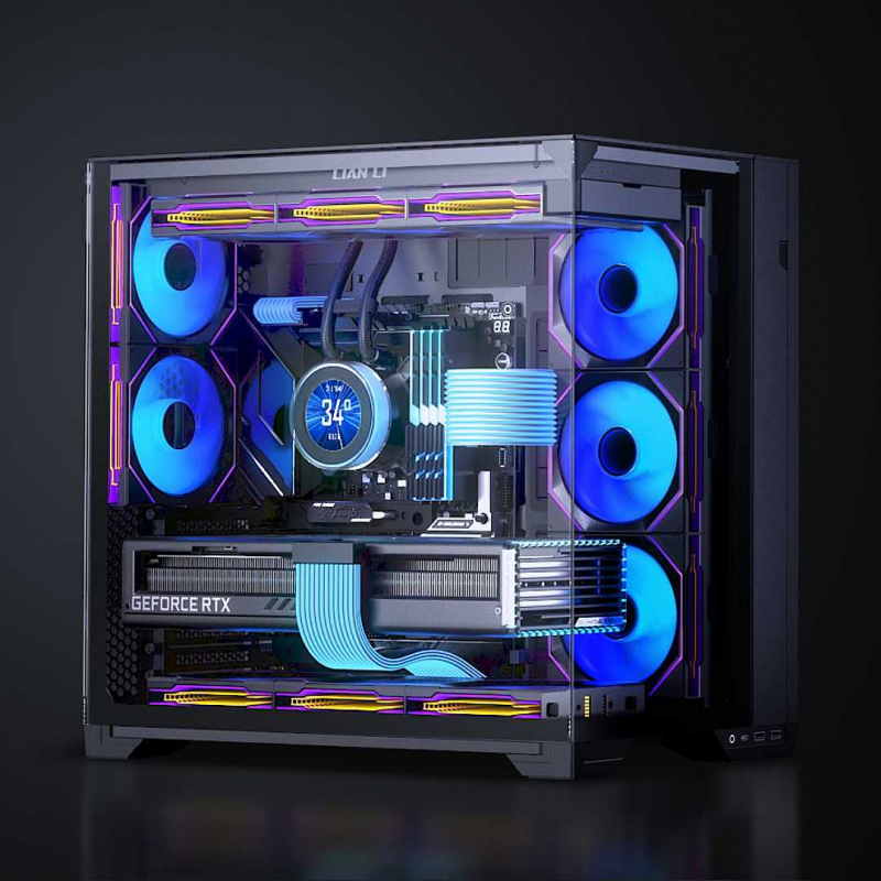 프레임과 엣지에 배치된 인피니티 미러 RGB는 깊이감 있는 조명 효과를 제공하며, L-Connect 소프트웨어를 통해 색상·패턴·밝기·속도 등을 세밀하게 제어할 수 있다. 주요 메인보드의 RGB 동기화 기능도 지원한다.