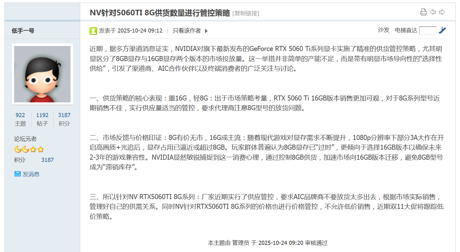 엔비디아, RTX 5060 Ti 8GB 공급 제한 시작