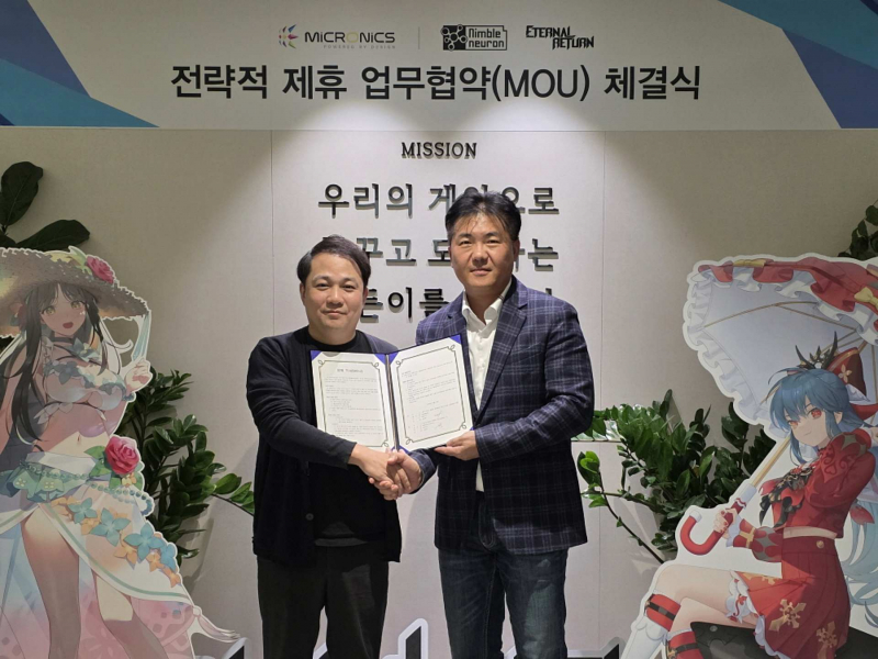 한미마이크로닉스와 님블뉴런이 온라인 생존 배틀 아레나 게임 ‘이터널 리턴’ IP를 중심으로 전략적 협력 양해각서(MOU)를 체결했다. 양사는 공동 마케팅, e스포츠 지원, 콜라보레이션 제품 개발을 추진하며 게이머에게 새로운 경험을 제공하고, 게임과 하드웨어가 결합된 문화 확산에 나설 계획이다.
