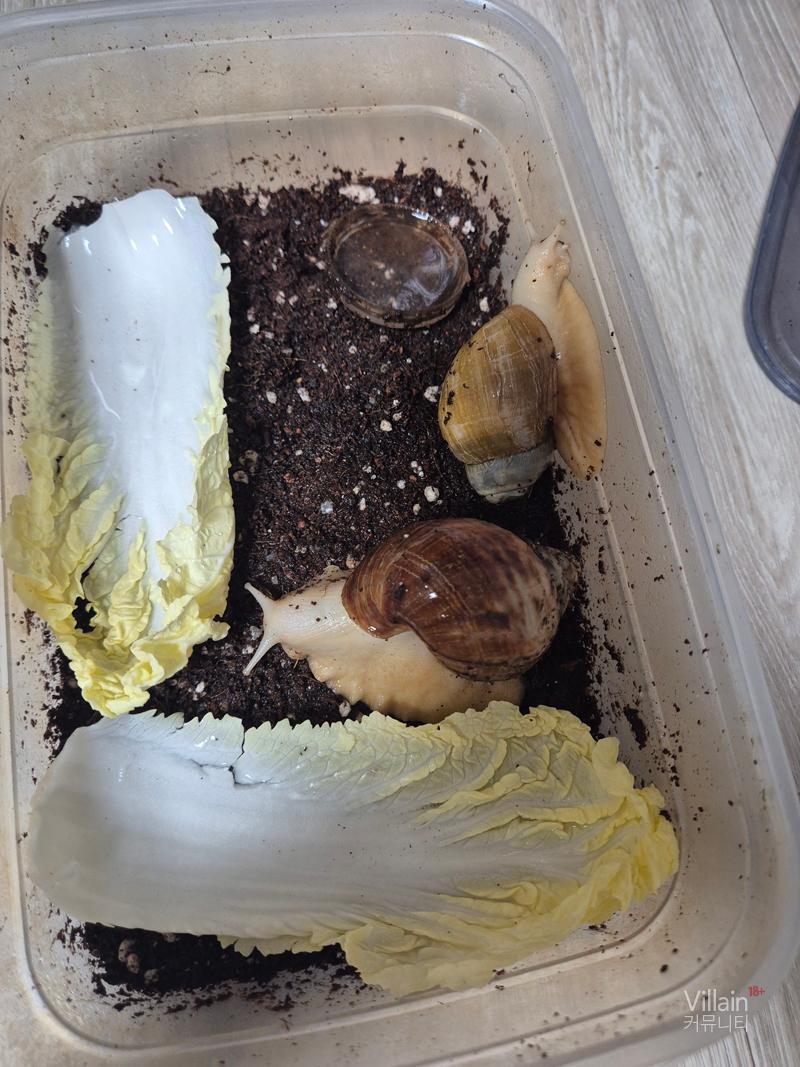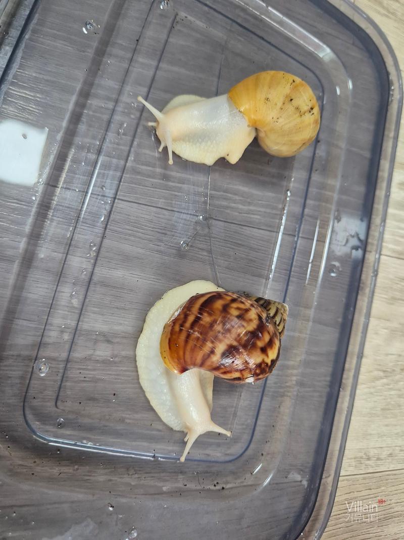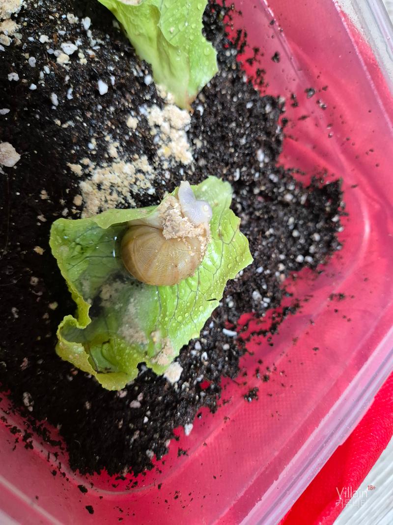 달팽이 2마리를 키우고 있습니다. 정확히는 억지로(?) 키우게 됐답니다. 여튼 금와라는 외래종인데, 덩치가 산 만합니다.