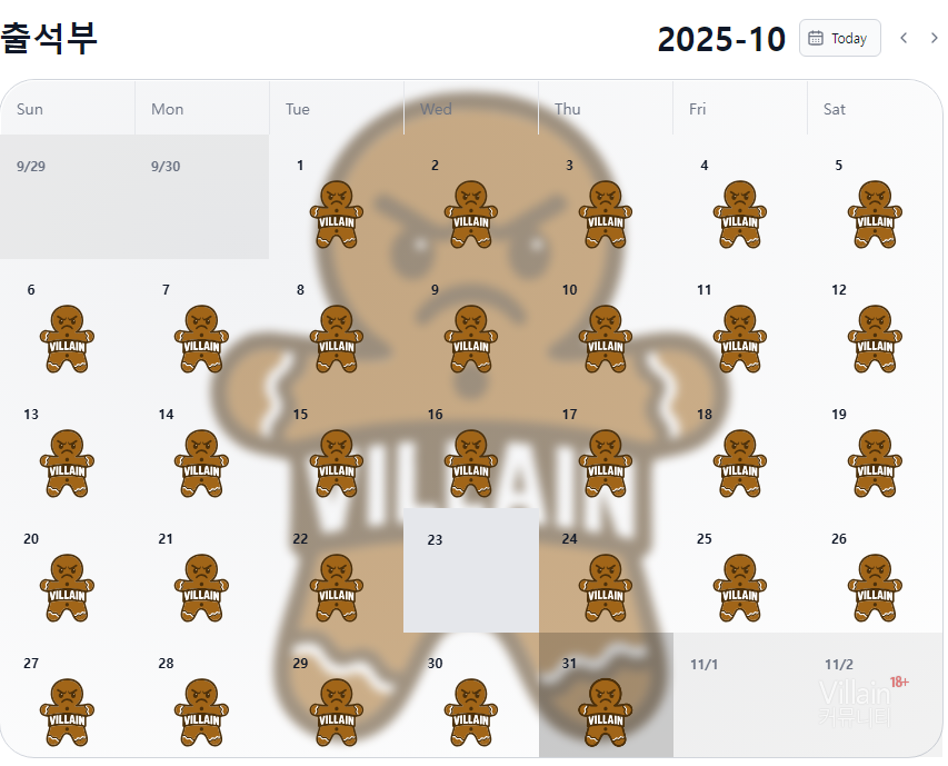 아쉽게도 10월 개근은 실패네요 ㅜ.ㅜ