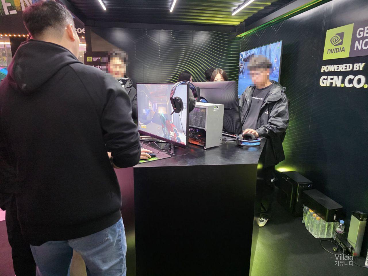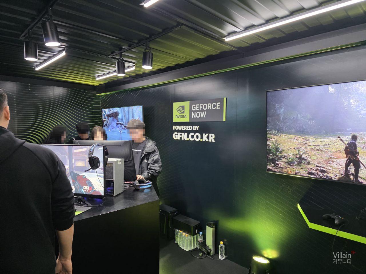 코엑스무대출입구 옆에 있던 행사공간입니다. 엔비디아 굿즈 판매와 지포스나우 체험 , 그리고 커스텀피씨를 전시하고 있었습니다.