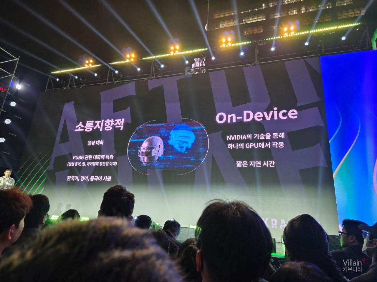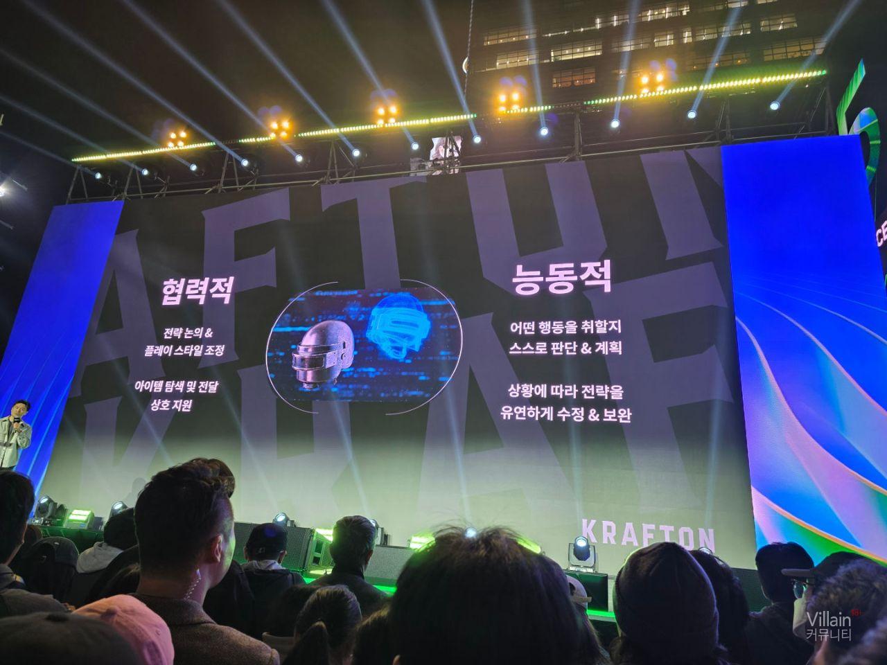 다음은 크래프톤의 이강욱본부장이 나와서 크래프톤이 지향하고 있는 방향에 대해 설명했습니다. 게임에 AI를 이용하는 방향으로 개발을 하고 있으며 내년쯤에 AI와 같이 배틀그라운드를 할 수 있는 시스템을 게임에 추가할 예정이라고 발표했습니다. 그리고 경품은 게이밍의자가 나왔습니다.