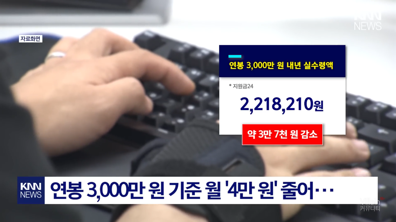 연봉 3천 기준에 약 4만원 줄어든다고 하네요.
