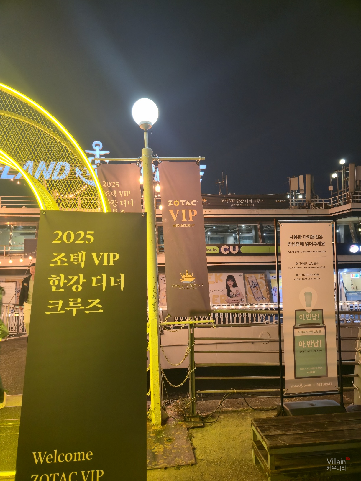 조텍 VIP 한강 디너 크루즈 팜플렛과 현수막 등이 여기저기 달려있더라구요.