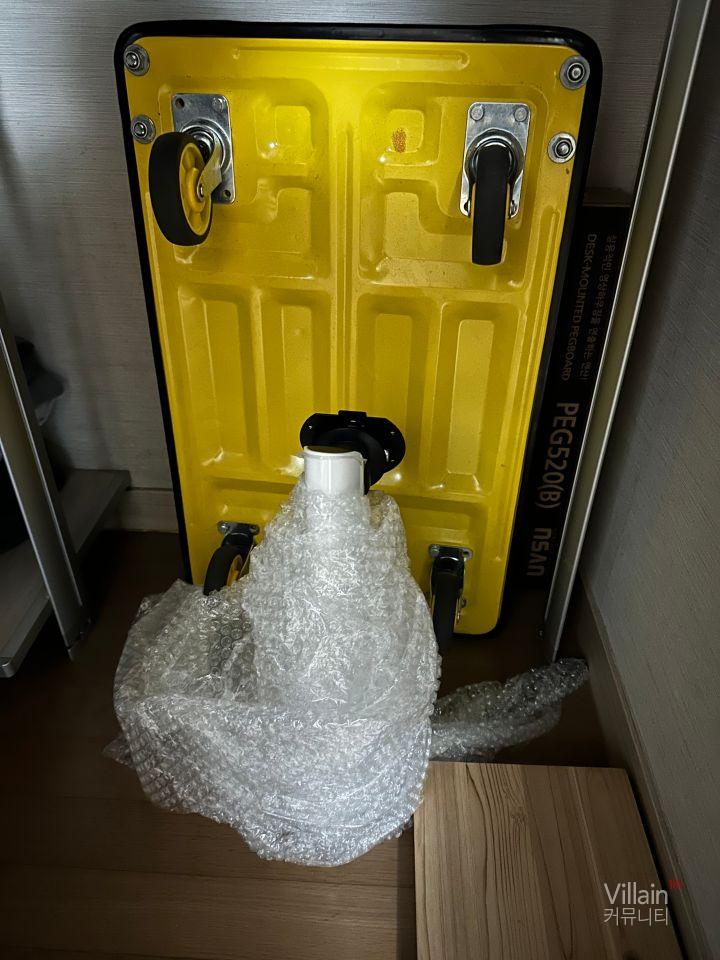 6. 옷장 안에 들어가 있는 스탠리 구르마 카트와 모니터 스탠드… 스탠리 카트는 저희 집의 두 아들 빌런들이 타고 놀다가 넘어지는 바람에 와이프의 불호령으로 버려질 위기에 처하여 황급히 옷장 속으로 숨어 들어갔습니다. 모니터 스탠드는 원래 스탠드 몸체와 바닥 부분이 나사로 분리가 될 수 있지만 초기 기사님께서 너무 강력하게 조여놓으신건지 도저히 풀리지 않고 나사만 야마가 나버려서 별 수 없이 안전을 위해 뽁뽁이로 감아 옷장 속에 넣어 두었습니다. 옷장을 열지만 않으면 보이지 않으니 큰 문제는 아니겠지요..