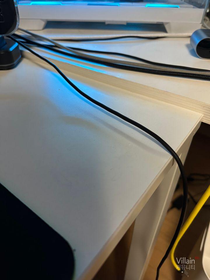 4. 메인책상과 높이가 맞지 않는 본체(보조)책상… 덕분에 케이블들이 메인 책상쪽으로 떨어지고 책상을 옮길 때 저 틈이 벌어지기라도 하면 어김없이 책상 사이로 선이 끼는 불상사가 발생했었죠 ㅎㅎ 책상을 새로 살 순 없으니 그냥 어쩔 수 없다고 생각하고 있습니다.