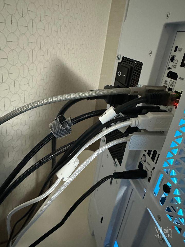 3. 온갖 케이블들로 난리가 난 본체뒷면… 사실상 확장성을 최대한 이용한다 생각하고 있긴 하지만 뭔가 하나를 빼야할때는 손으로 선을 잡고 쭉 따라가서 본체뒷면에 있는걸 골라내야 하죠 ㅎㅎ 생활의 지혜로 고수분들은 하나씩 주기를 해놓으시는 것을 봐서 조만간 주기를 해놓을까 싶지만 주렁주렁 달린 케이블에 다시 주렁주렁 테이프를 붙여서 주기를 하려니 뭔가 더 지저분해지는게 아닌가 하는 생각이 들기도 합니다.