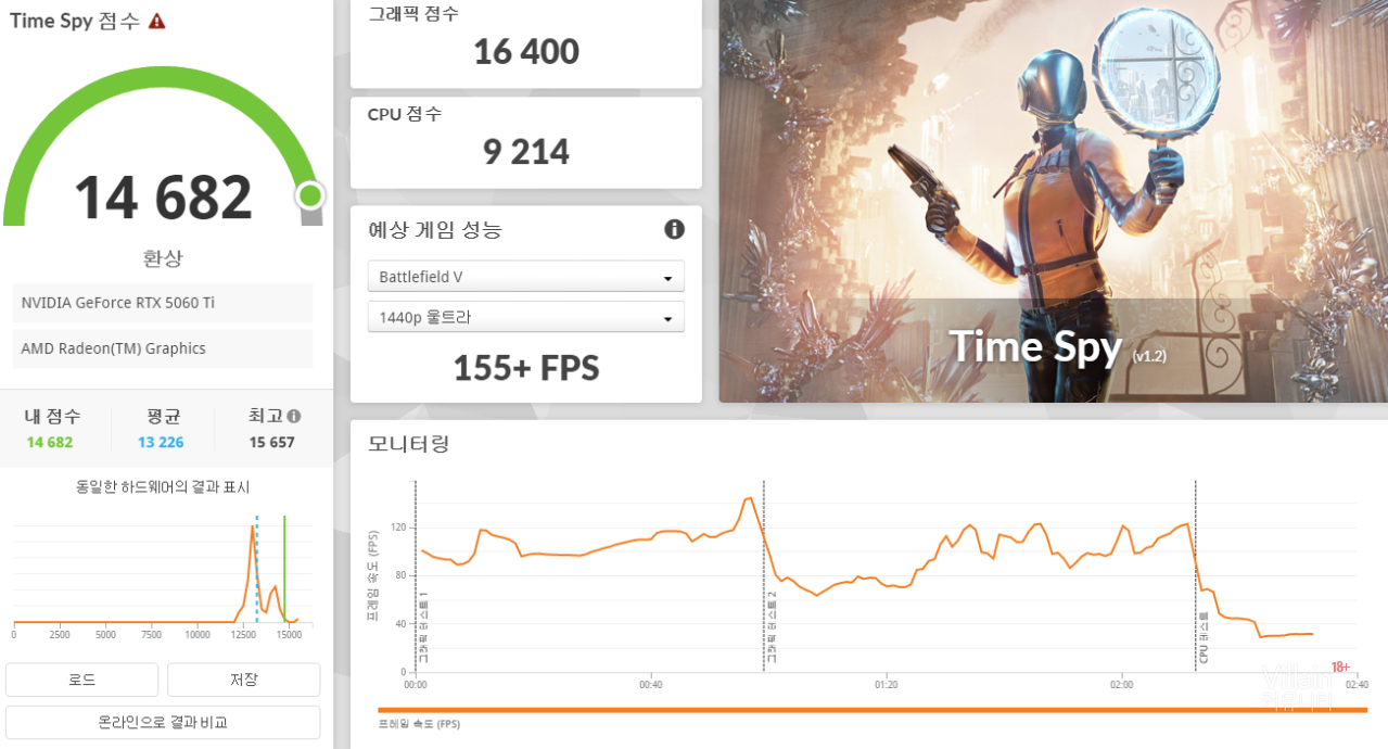 장착하고 돌려본 3dmark 타임스파이 점수입니다. 딱히 뭐 건드린 것 없는데 점수가 상당히 높게 나오네요.