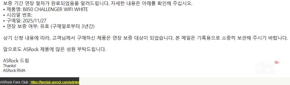 에즈락 메인보드 1년 a/s 연장 등록 한거 메일 왔네요.