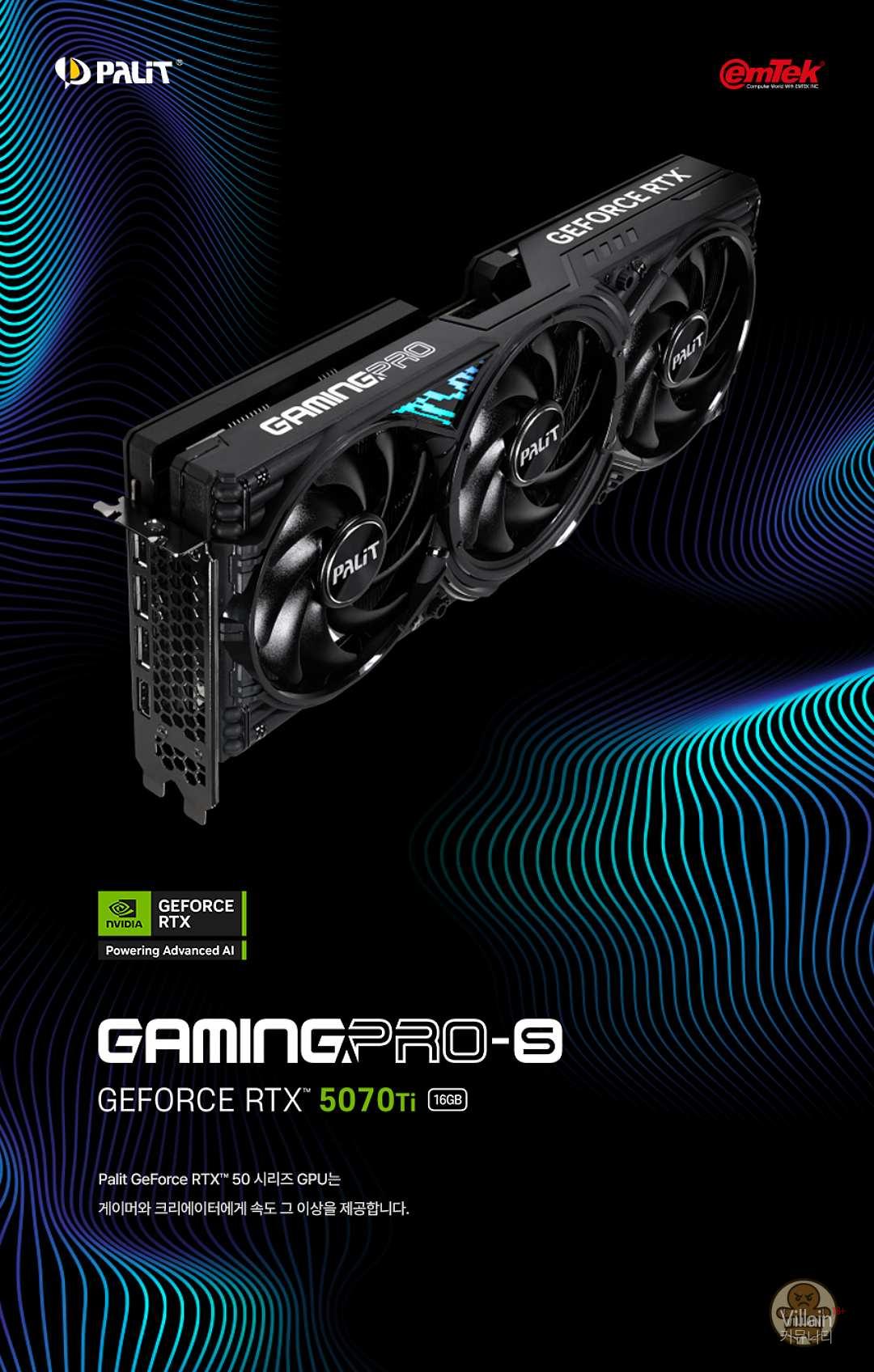 이벤트 대상 제품 중 하나인 Palit 지포스 RTX™ 5070 Ti GAMINGPRO-S D7 16GB 이엠텍은 초고속 GDDR7 메모리와 향상된 RT 코어 및 5세대 Tensor 코어가 탑재된 최신형 그래픽 카드로 CUDA Cores 8,960개, Boost Clock 2,452MHz를 제공하여 게이머와 크리에이터를 위한 최적의 성능을 제공한다.