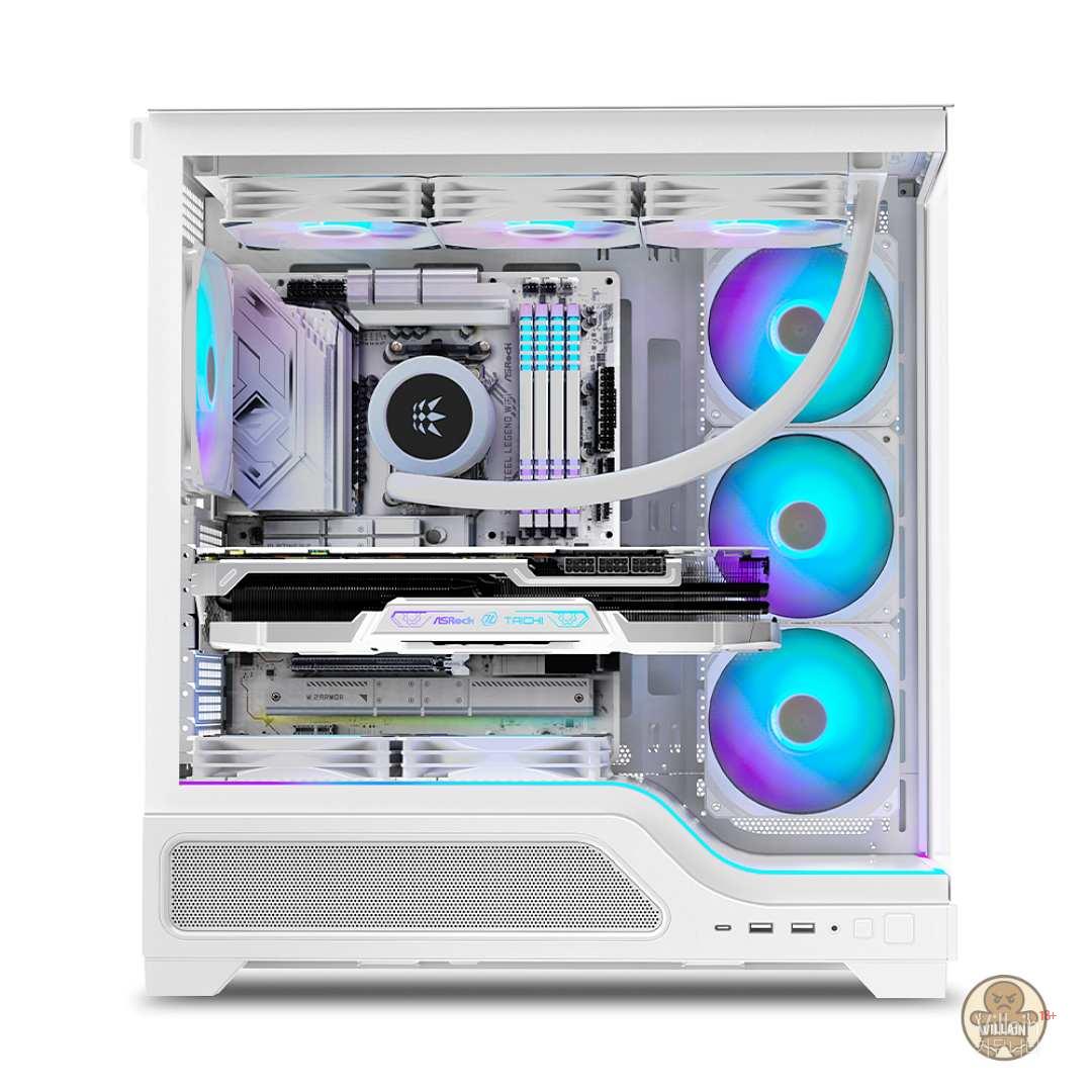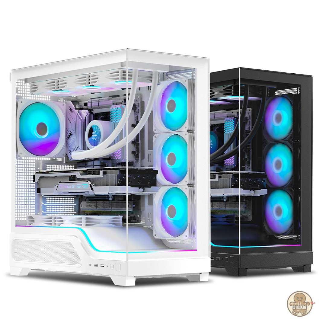 전면과 좌측면에는 강화유리를 적용하여 내부를 넓게 드러내는 풀 파노라믹 디스플레이를 구현했으며, 기본 구성으로 제공되는 HDB 쿨링팬 4개(측면 120mm 3개, 후면 140mm 1개)는 화려한 조명 효과와 함께 안정적인 쿨링 성능을 제공한다.