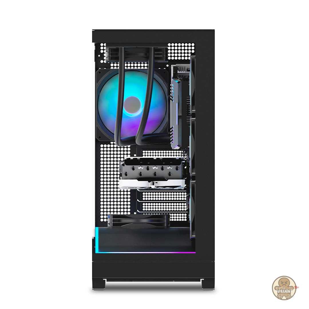옵션을 더하면 최대 9개의 aRGB HDB 팬을 구성할 수 있어 다양한 냉각 세팅이 가능하며, 특히 후면 140mm 팬은 최대 93CFM 풍량을 제공해 내부의 뜨거운 공기를 빠르게 배출한다. 수랭 쿨러는 최대 360mm, 공랭쿨러는 최대 175mm까지 장착을 지원해 고성능 시스템 구성에도 충분한 확장성을 갖췄다.