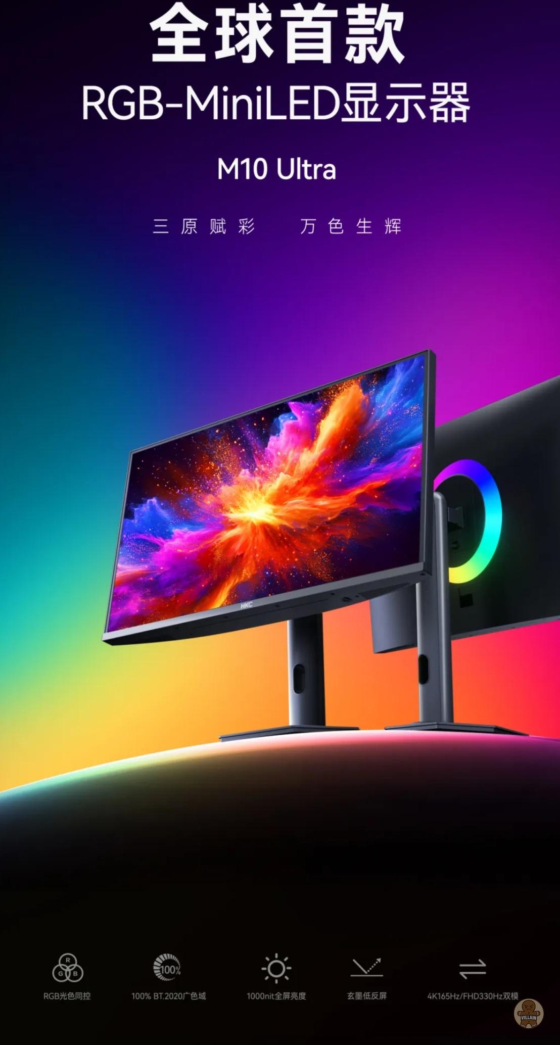 중국 디스플레이 제조사 HKC가 세계 최초 RGB Mini LED 기반 게이밍 모니터 ‘M10 Ultra’를 공개했다.