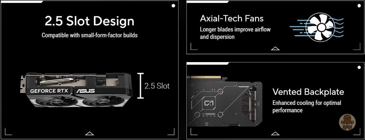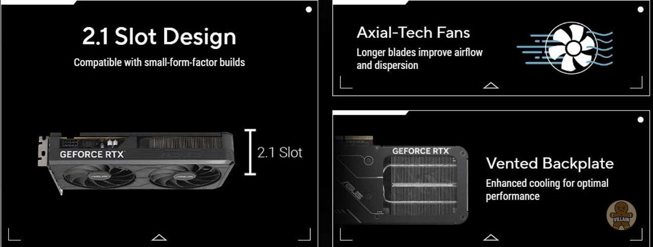 가장 큰 변화는 두께다. 기존 2.5슬롯 설계에서 2.1슬롯으로 줄어들면서, 두께는 약 12mm 감소했다. 길이도 기존보다 약 4mm 짧아졌다. 이로 인해 소형 폼팩터 시스템에 더 적합한 그래픽카드가 됐다.