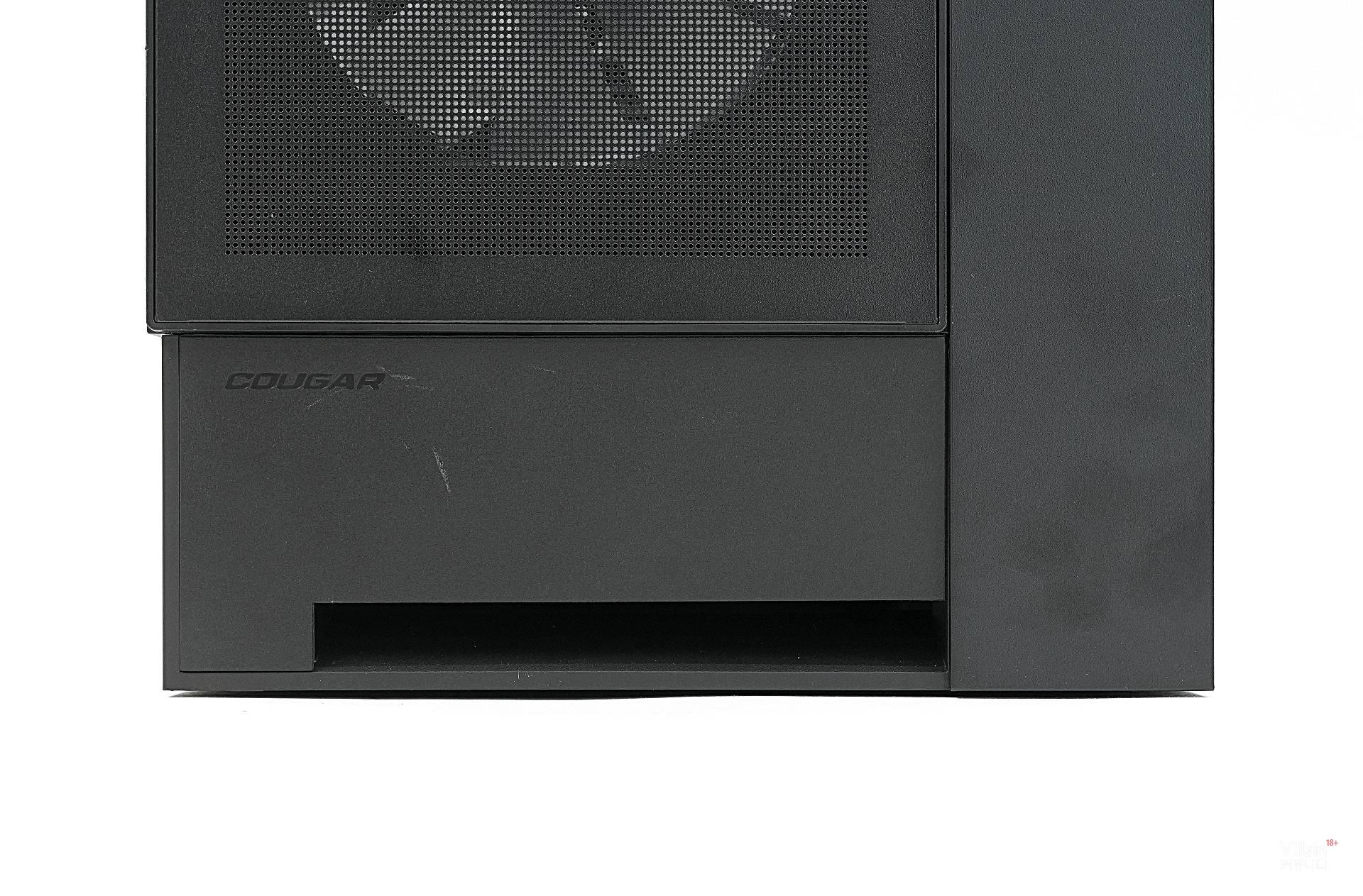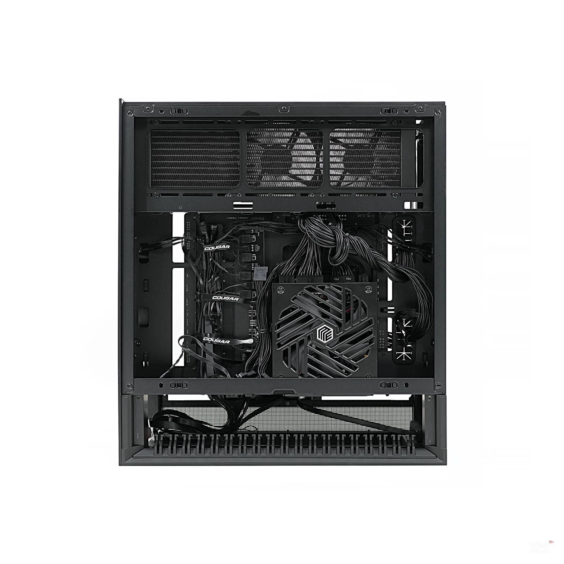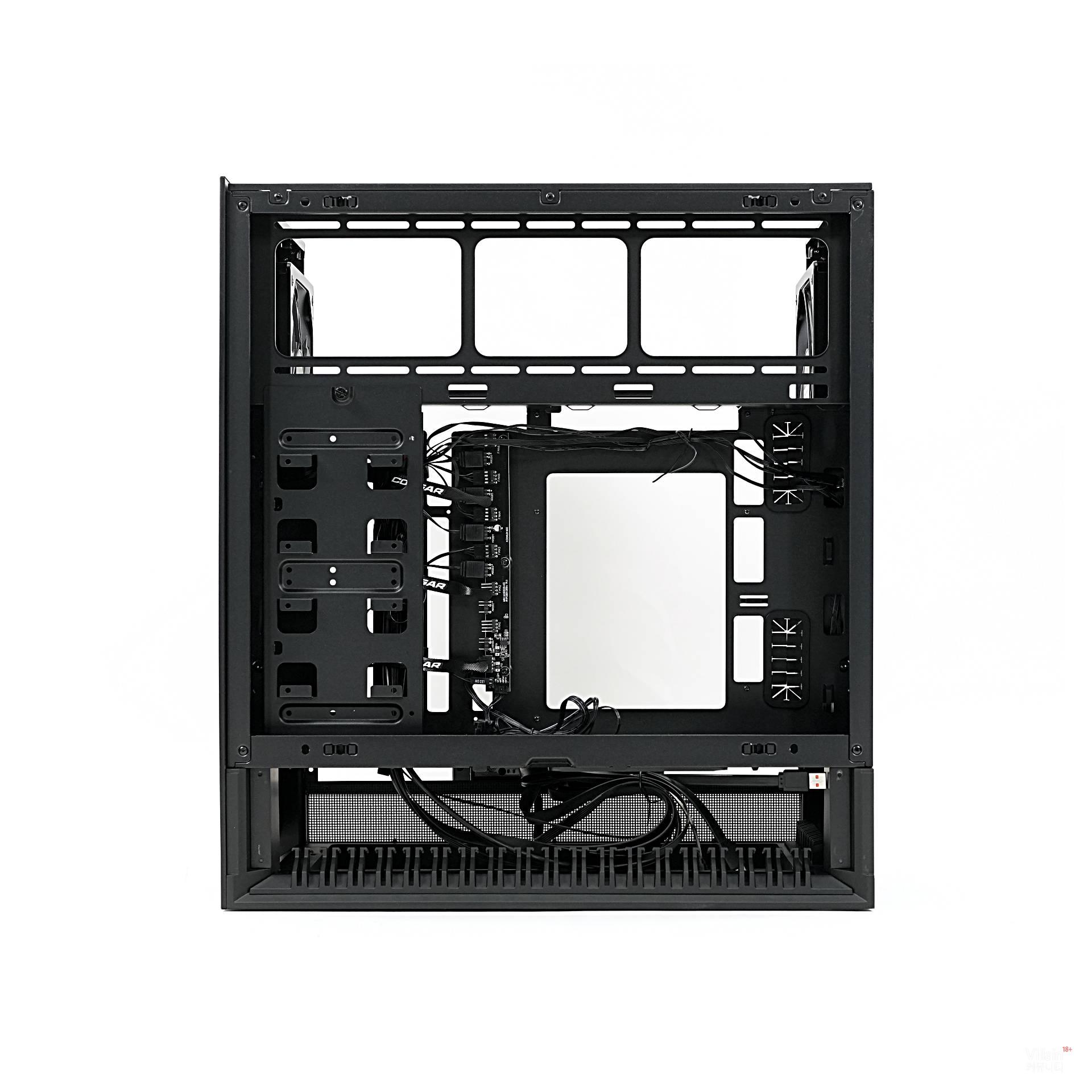 그런데 막연한 상식을 통째로 깨뜨린 회사가 있다. 바로 쿠거다. 쿠거는 도전 정신으로 케이스 앞뒤의 개념을 파괴해 버렸다. 흡기와 배기의 방향은 그대로 두면서, 앞뒤의 생김새를 똑같이 만들어 버린 것이다. 그리고 케이블이 어느 방향에 있든 하단으로 빠져나가게 처리했다.
