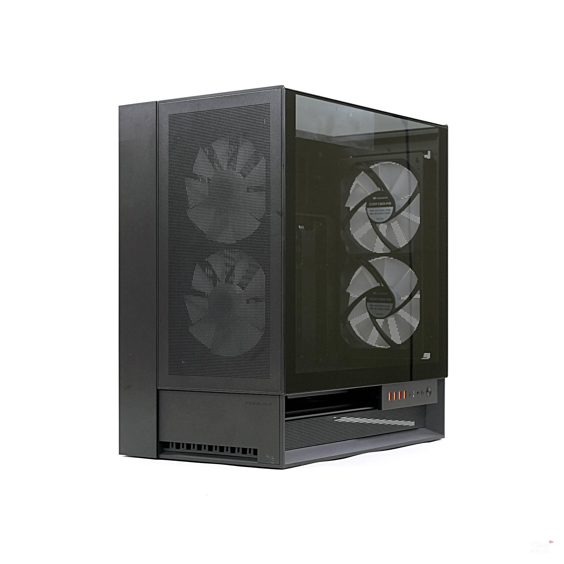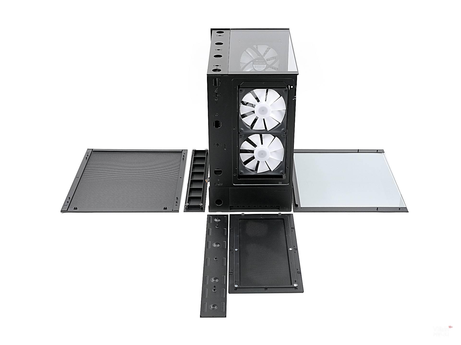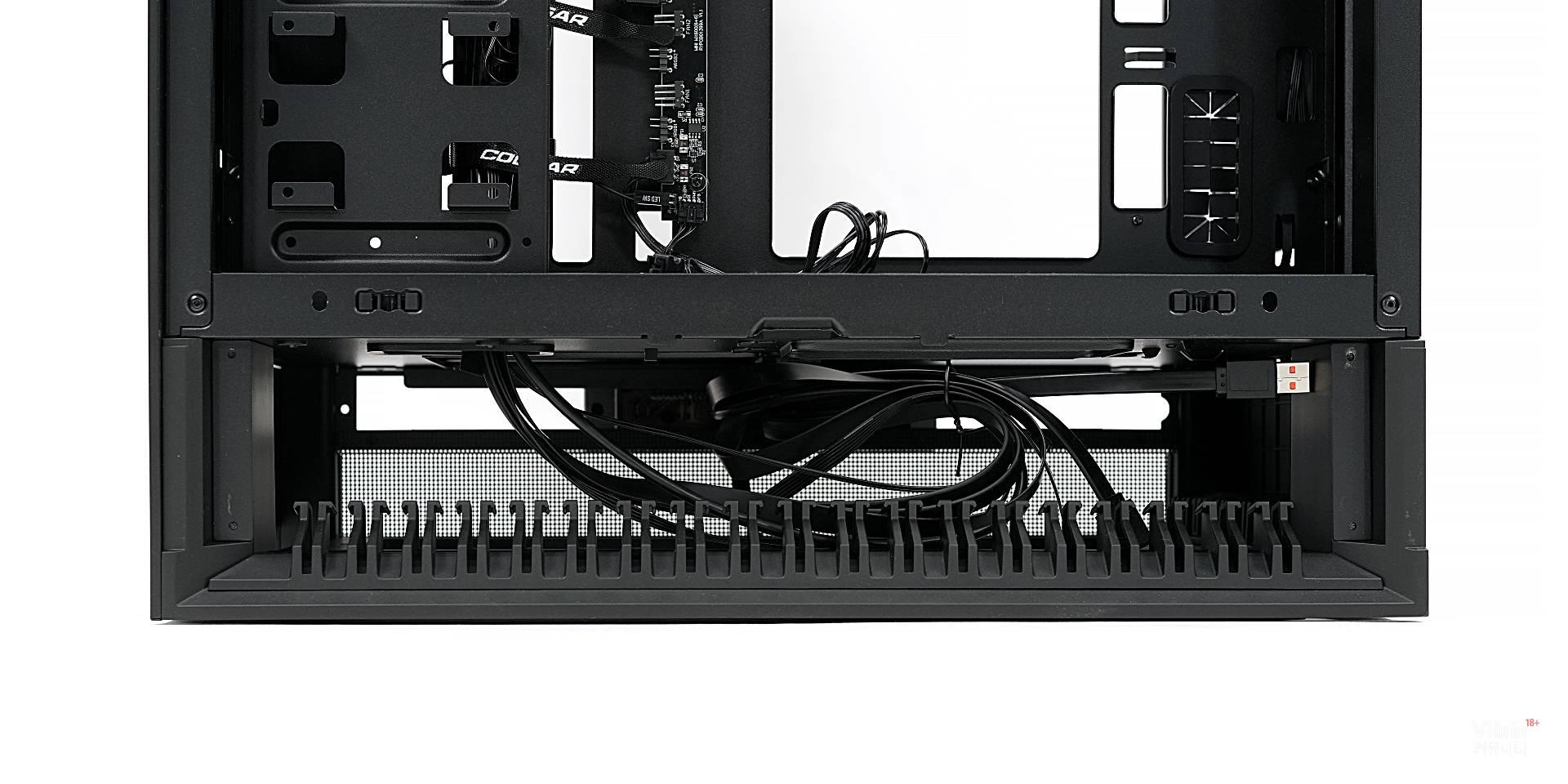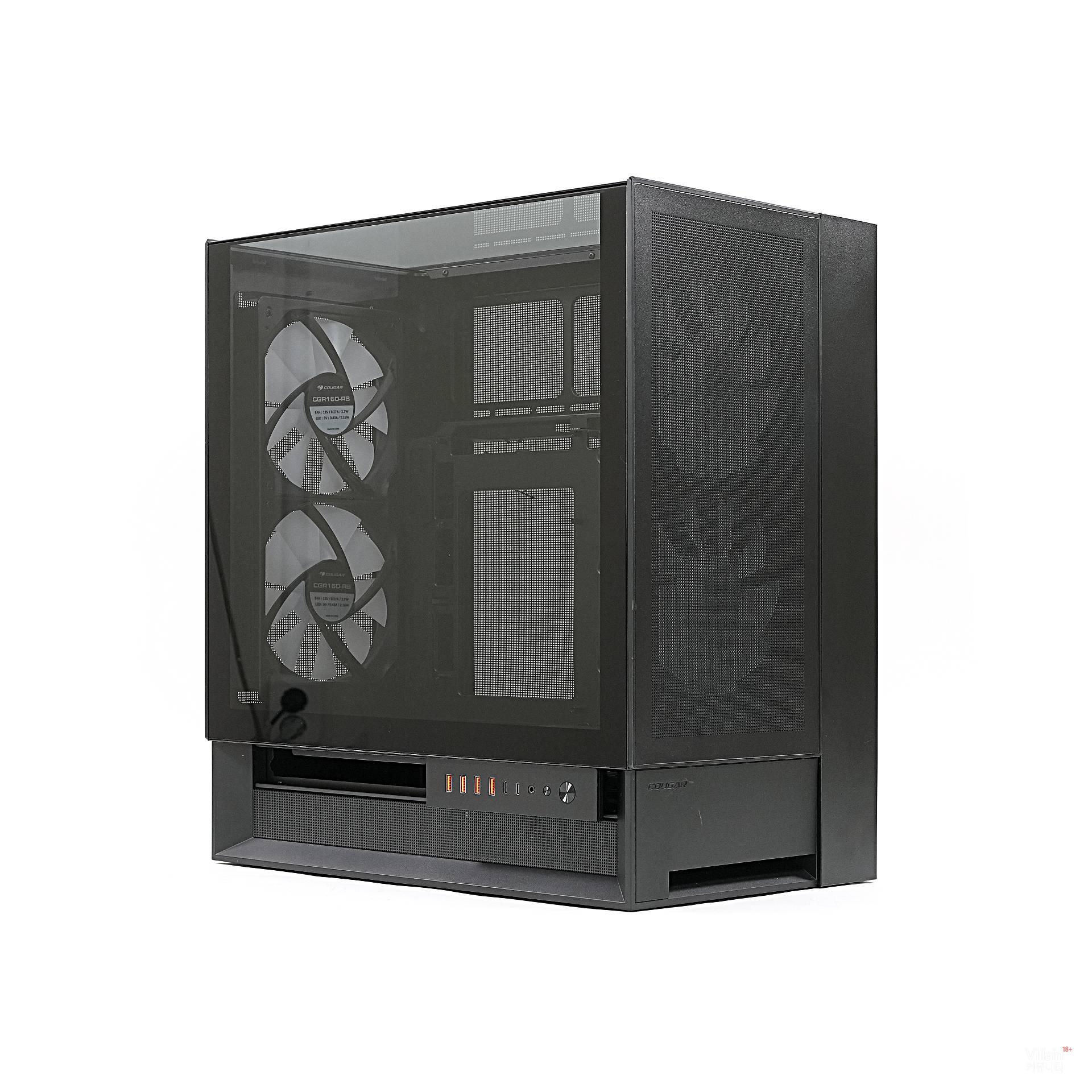 그런데 막연한 상식을 통째로 깨뜨린 회사가 있다. 바로 쿠거다. 쿠거는 도전 정신으로 케이스 앞뒤의 개념을 파괴해 버렸다. 흡기와 배기의 방향은 그대로 두면서, 앞뒤의 생김새를 똑같이 만들어 버린 것이다. 그리고 케이블이 어느 방향에 있든 하단으로 빠져나가게 처리했다.