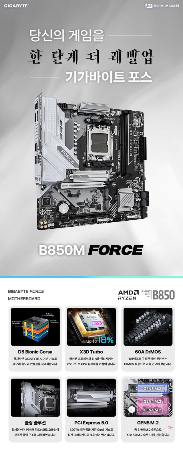 GIGABYTE Technology Co., LTD(이하 기가바이트)의 공식 공급원인 제이씨현시스템 (대표 차정헌)은 기가바이트의 오버클럭 특화 라인-업 B850M FORCE 메인보드를 공식 출시한다.