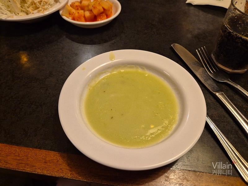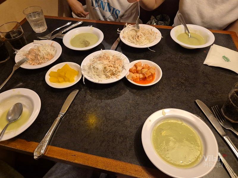 샐러드 바를 무료로 이용할 수 있습니다. 샐러드 바라고 해봐야 양배추 샐러드와 스프, 단무지, 깍두기가 전부이지만, 스프가 너무 맛있어 돈까스가 나오기 전에 배불리 먹었네요.