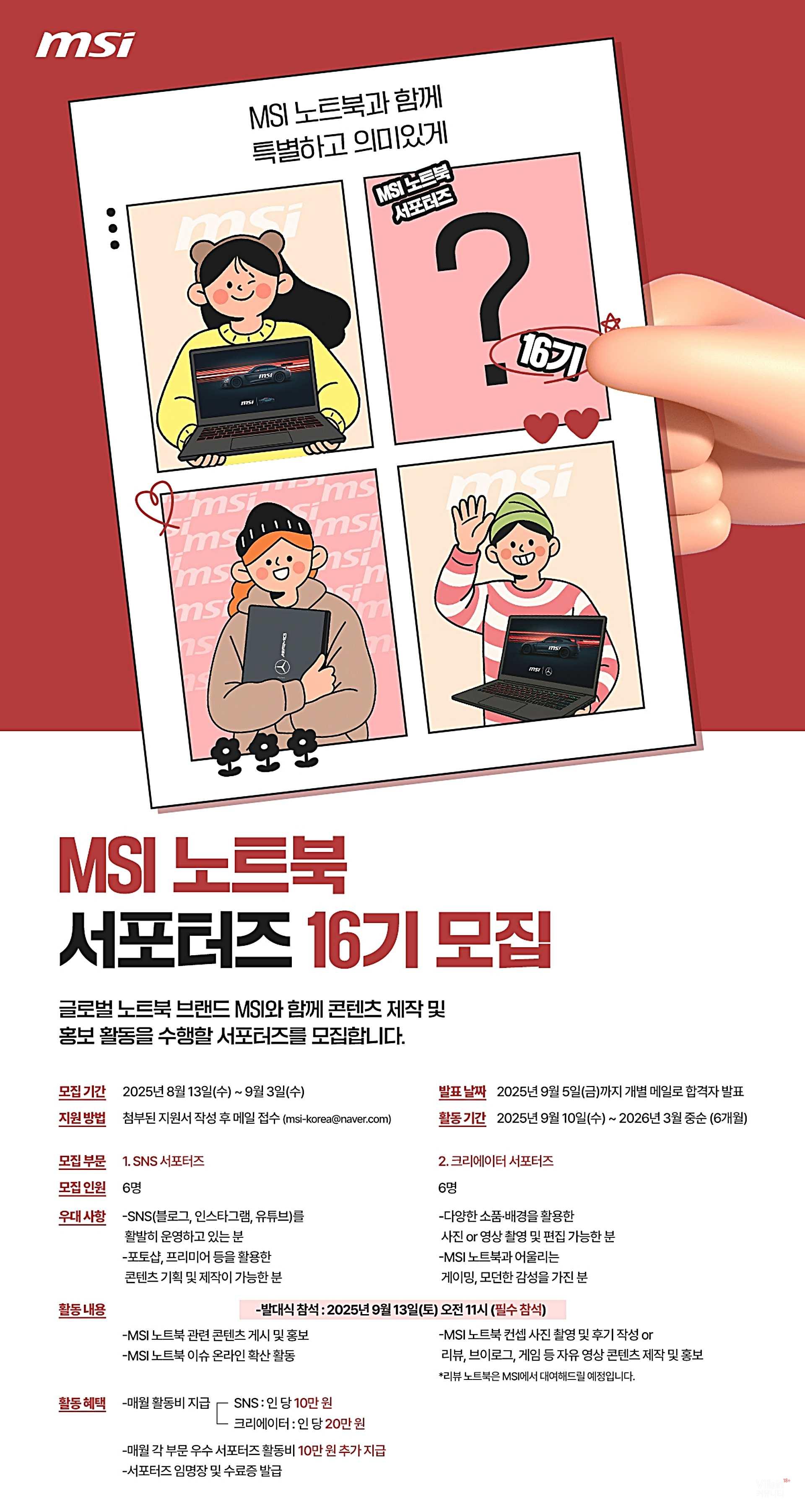 MSI, 노트북 서포터즈 16기 모집