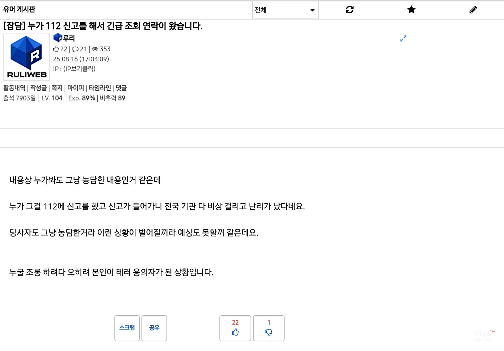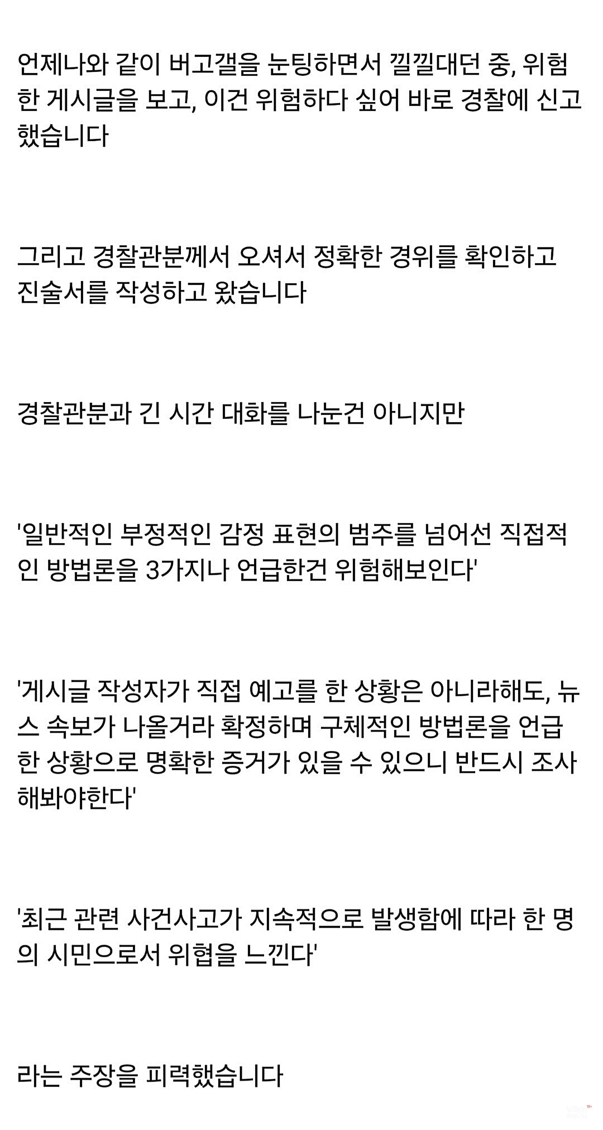 행여~ 라도 장난으로 테러/협박 글은 ‘저얼대’ 남기지 말아야 겠습니다.