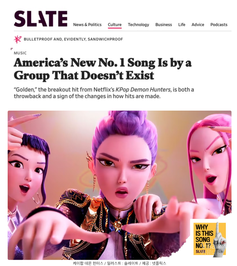 영화 시나리오를 이렇게 쓰라고 해도 못쓸 것이다. 1969년 디 아치스의 Sugar, Sugar와 똑같은 판박이처럼, 한국의 K-POP 걸그룹 헌트릭스와 주제곡 "골든"은 거침없이 빌보드 HOT100 정상을 항해 질주했다. 디 아치스 쇼 TV 애니메이션처럼, 넷플릭스의 케데헌 애니메이션은 영혼을 흥분시키는 경쾌한 K-POP으로 무장한채 미국 관객들을 놀라게 하고 있다.