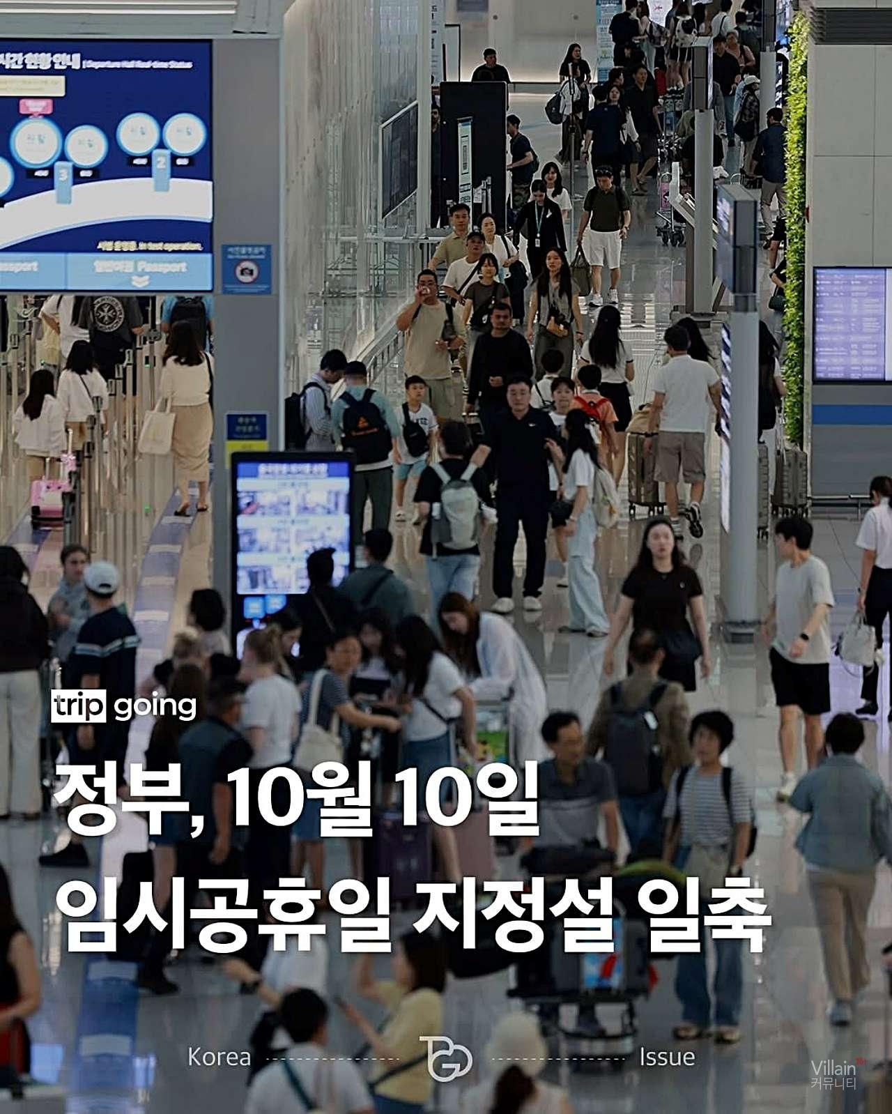 정부가 추석 연휴 직후 금요일인 10월 10일(금)을 임시공휴일로 지정할 수 있다는 전망을 공식적으로 부인했습니다. 기획재정부는 “검토한 사실이 없다”며 장기간 연휴가 해외여행 수요를 키워 내수 활성화에 도움이 되지 않고 조업일수 감소로 수출과 생산에 타격을 줄 수 있다고 설명했는데요. 실제 올해 설 연휴 임시공휴일 지정 당시에도 해외여행은 늘고 국내 소비는 줄어 효과가 미미했다는 지적이 있었습니다.