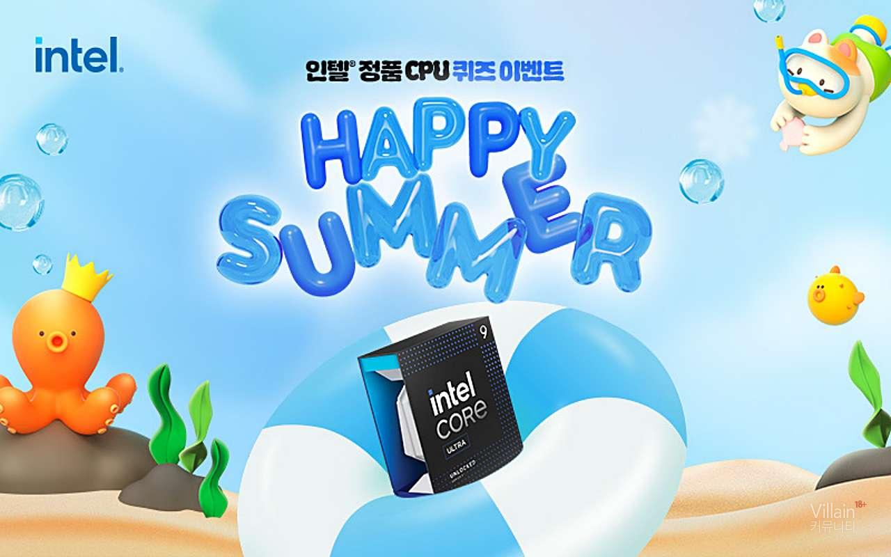 인텔 공인대리점 코잇, 인텍앤컴퍼니, 피씨디렉트가 HAPPY SUMMER 인텔 정품 CPU 프로모션을 진행한다. 이번 프로모션은 인텔 정품 CPU 혜택과 글로벌 최초로 한국에서만 제공되는 인텔 정품 밸류팩을 알리기 위한 이벤트로, 관련 퀴즈 정답자 중 추첨을 통해 경품을 제공한다.