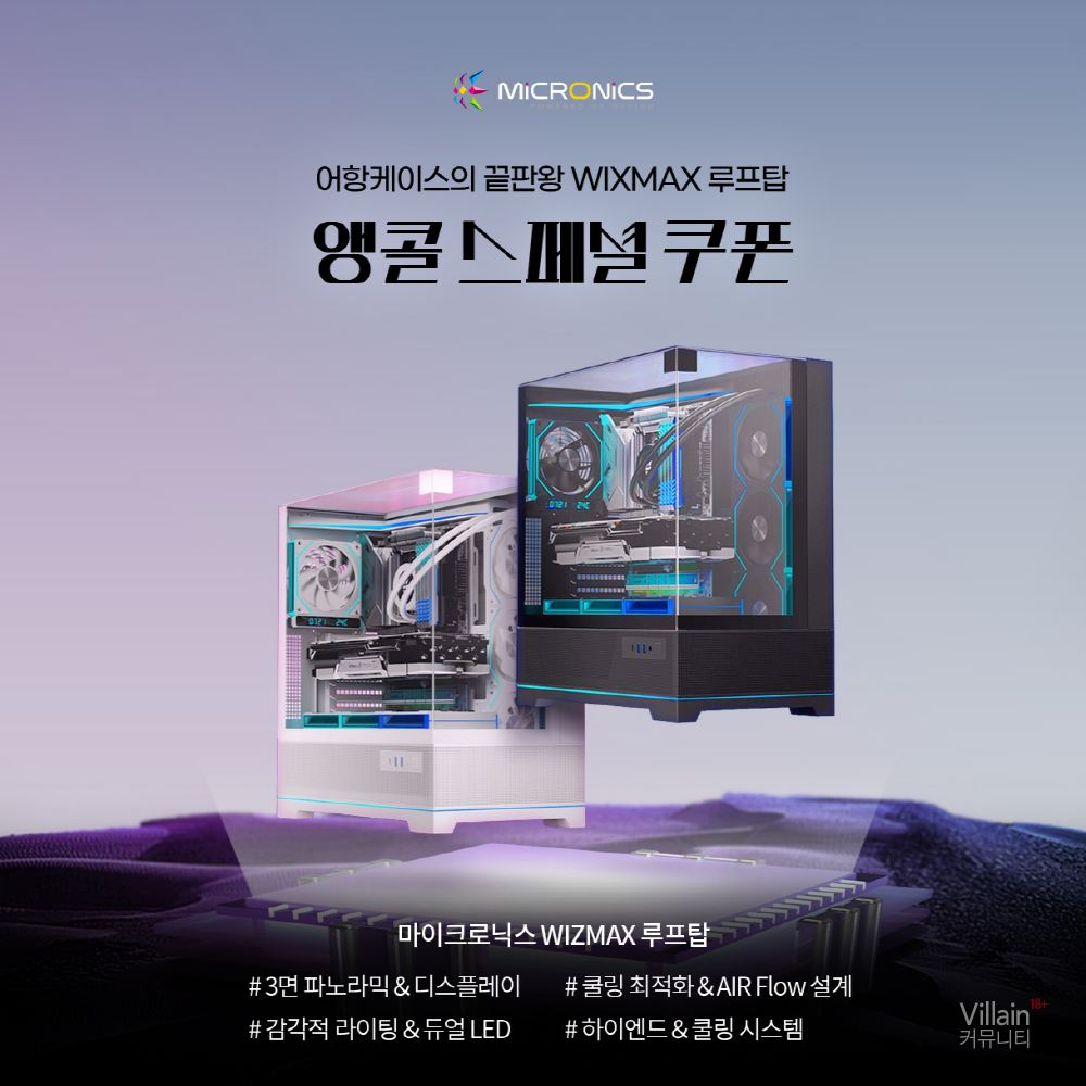 이번 행사는 컴퓨존 단독 프로모션으로, 8월 22일부터 28일까지 진행된다. 행사 기간 동안 컴퓨존에서 WIZMAX 루프탑 시리즈(블랙, 화이트)를 구매하는 고객에게는 3만 원 즉시 할인 쿠폰이 제공된다.