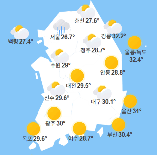 날씨 상황을 보니 서울 / 경기만 비가 오고 다른 지역은 아닌듯해요.