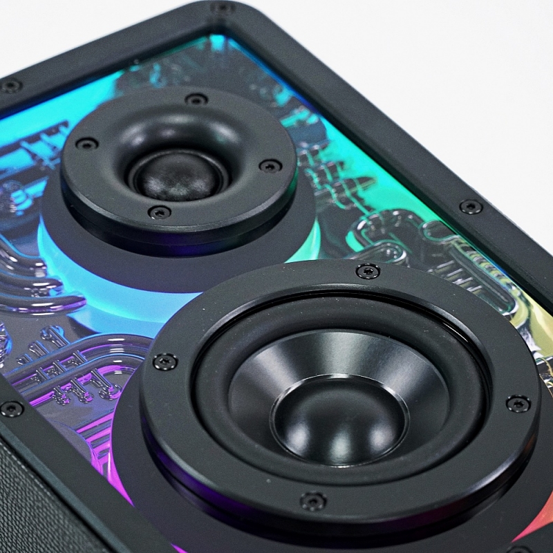 ▲ 속보이는 섹쉬한 누드 디자인에 RGB로 멋을 더한 이색 스피커가 출시됐다.