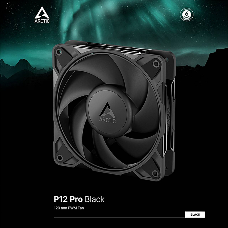 정밀 자동 밸런싱, 소음을 억제하는 최신 마이크로컨트롤러, PWM 신호 5% 미만 시 팬 회전을 멈추는 ZERO RPM 기능이 적용돼 효율성과 정숙성을 동시에 확보했다. 아틱 P12 PRO 시리즈는 6년 품질 보증이 제공된다.