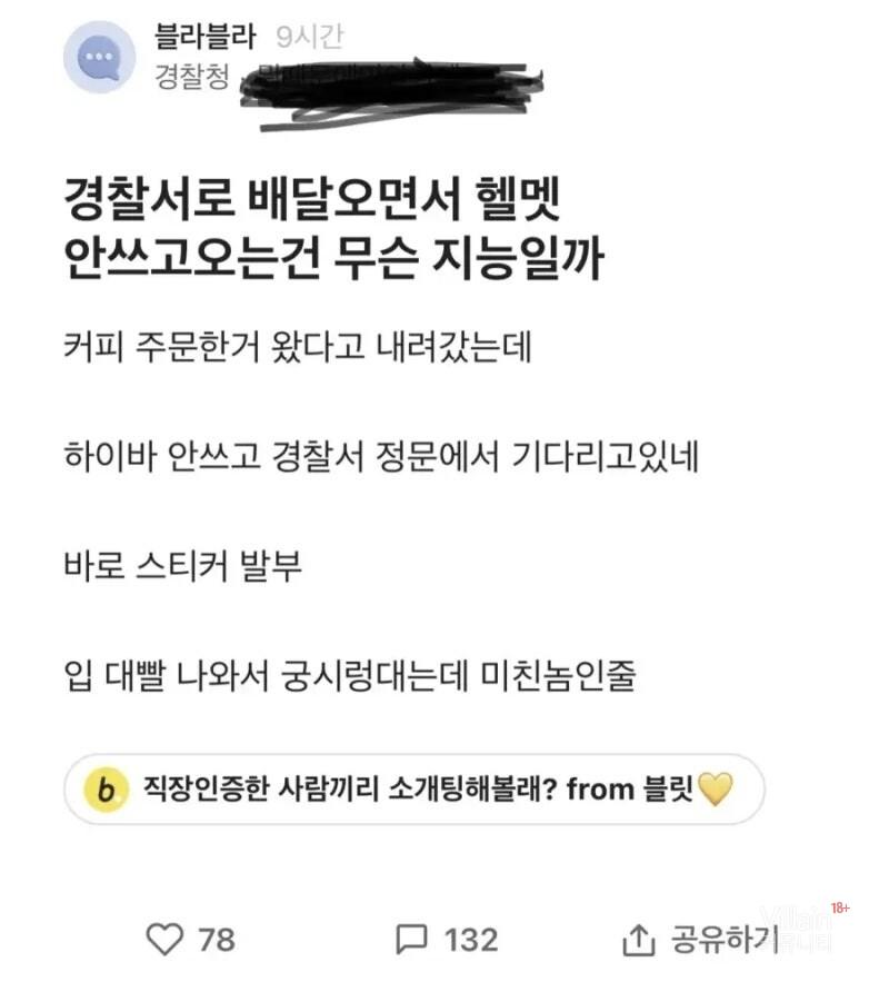경찰서로 배달오면서 헬멧 안쓰고오는건 무슨 지능일까